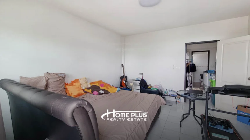 -ชั้น1 ภายในบ้าน พื้นปูด้วยกระเบื้องมีต่อเติมครัวหลัง ต่อเติมหลังคาโรงจอดรถฝ้าฉาบเรียบทั้งหลัง
